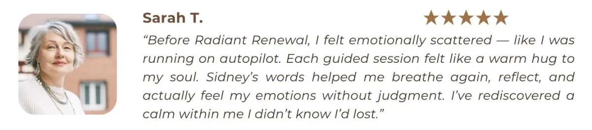 Step Into Your Next Chapter with Confidence — Join Sidney Avlos' Weekly Guided Renewal Sessions and Find Your Center Again.